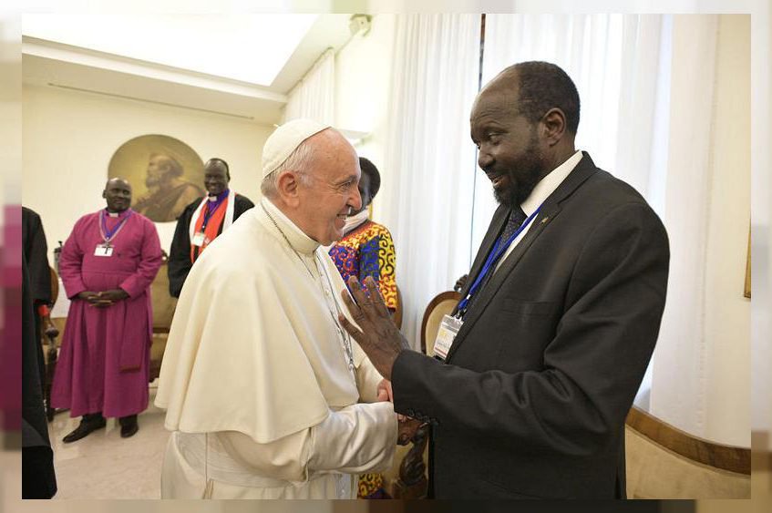 Two years later Pope Francis invited President Salva Kiir, Dr. Riek Machar and other leaders to Vatican where he kissed their feet and urged them to implement the revitalized peace agreement.